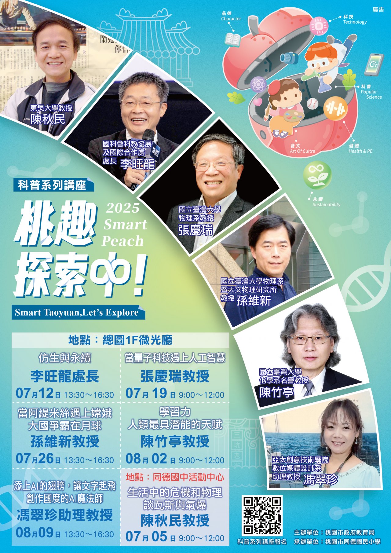 | 主旨: | 有關本市「2025年Smart Peach桃趣探索中!」-國中小暑期科普營隊系列活動,請貴校協助公告周知並鼓勵學生及家長踴躍報名參加,請查照。 |