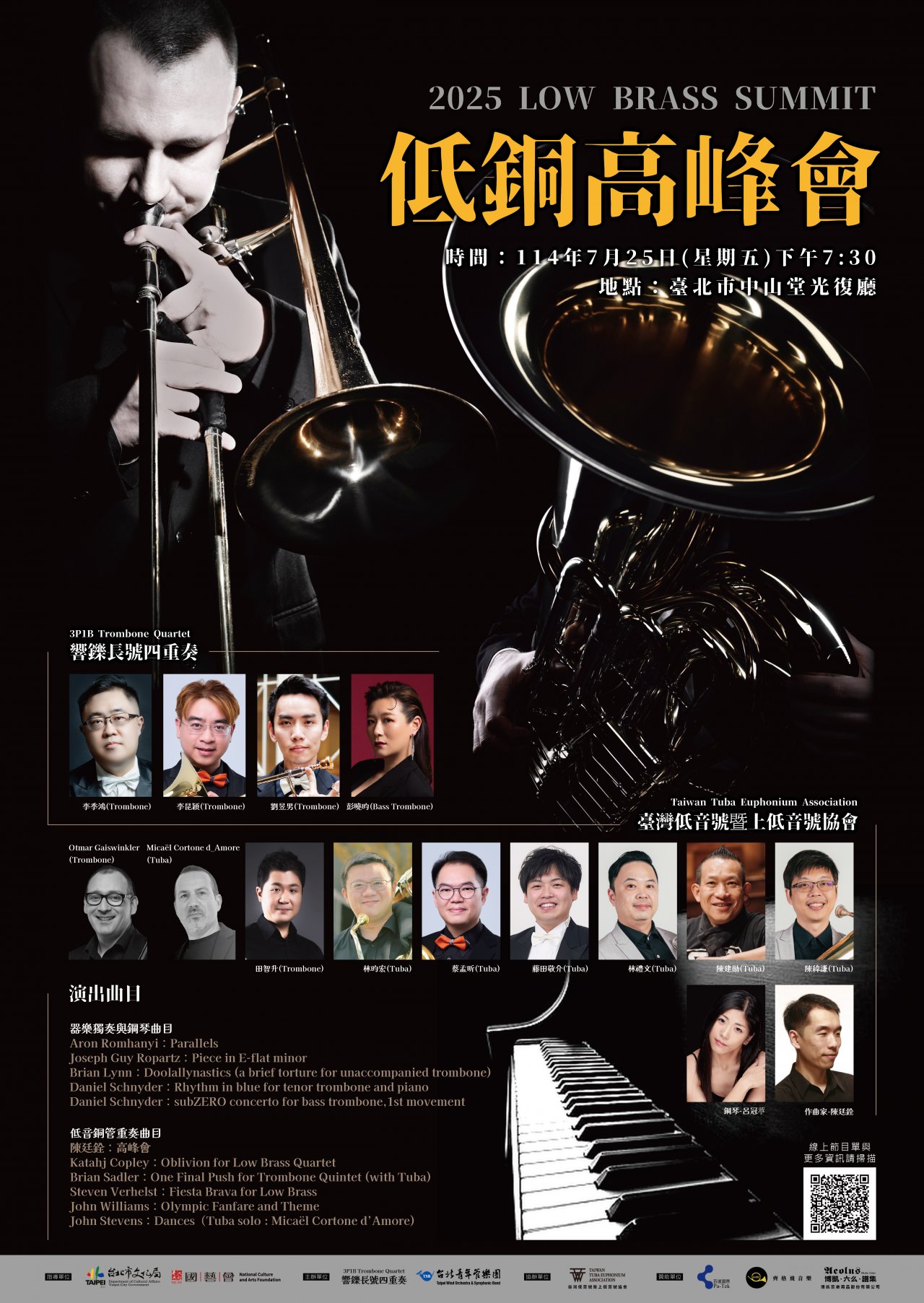 | 主旨: | 檢送「響鑠長號四重奏2025音樂會《低銅高峰會》」海報1份,敬請協助轉知轄屬學校、校內師生並鼓勵踴躍參與,至紉公誼,請查照。 |