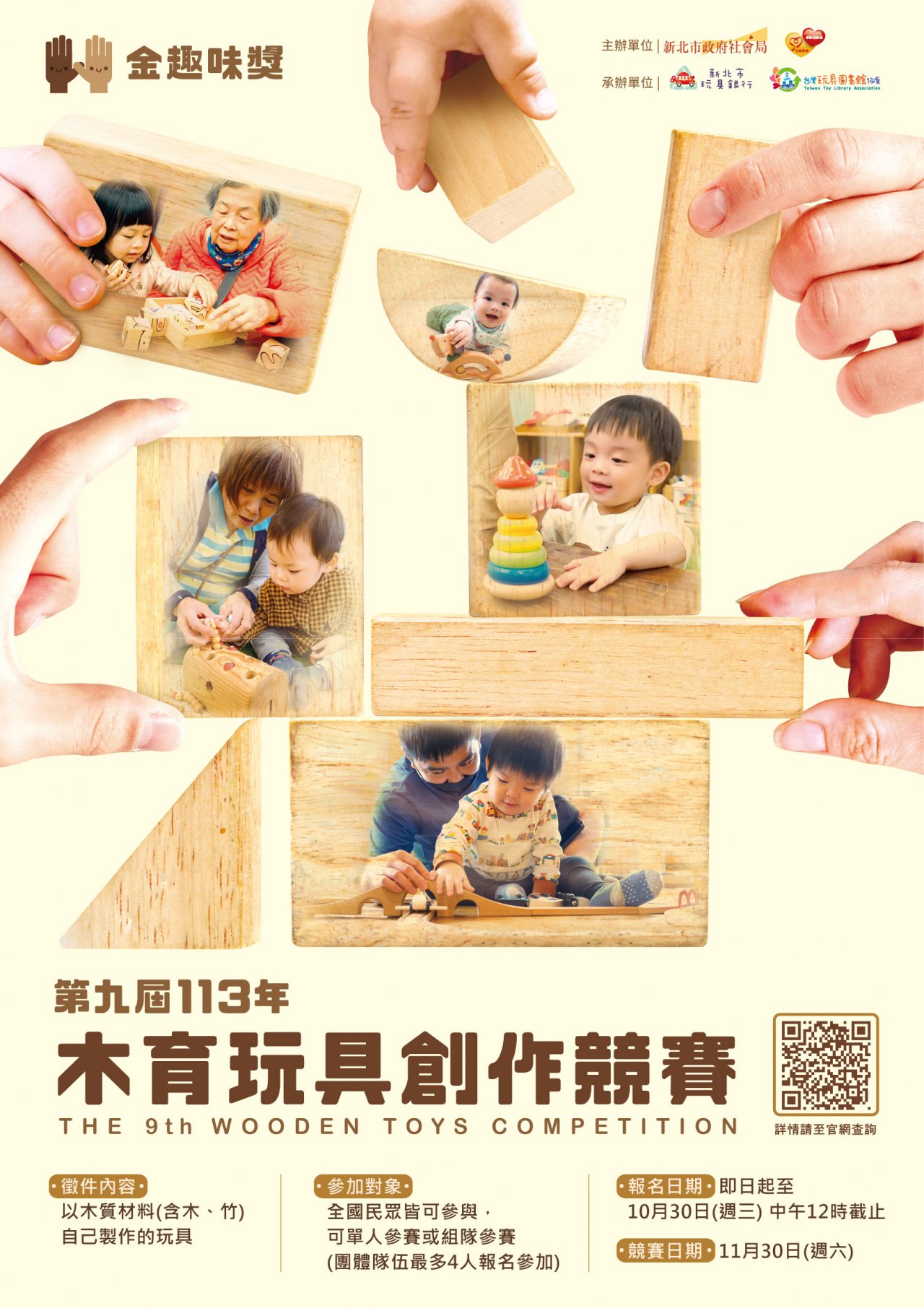 | 一、 | 本會與新北市政府社會局合作辦理《113木育玩具創作競賽-第九屆金趣咪獎》,誠摯邀請貴校師生參與競賽活動。 |