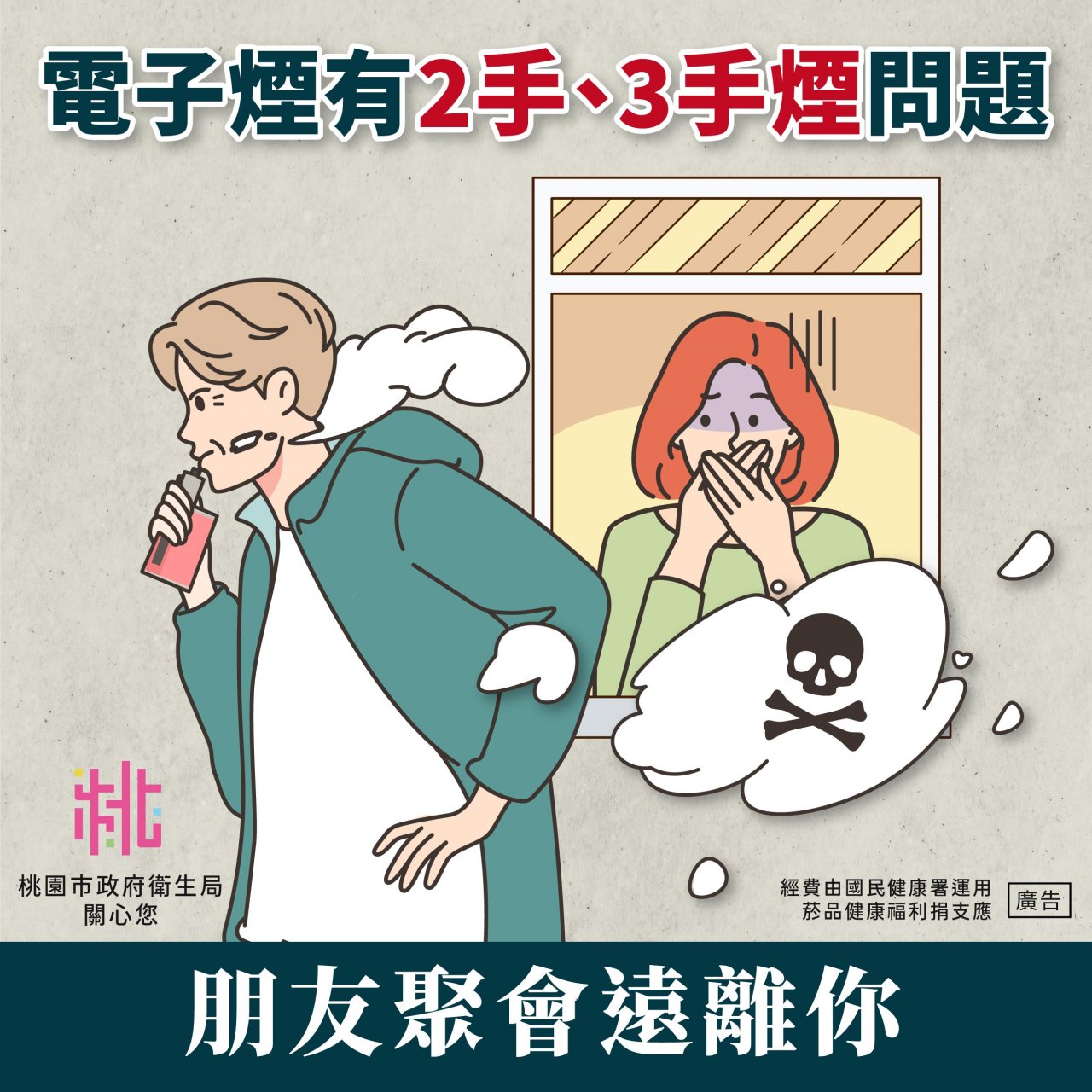 | 主旨: | 有關本府衛生局辦理之「113年桃園市電子煙危害知識答題抽好禮問卷活動」,請貴校轉知並鼓勵學生及兒童青少年踴躍參與,請查照。 |