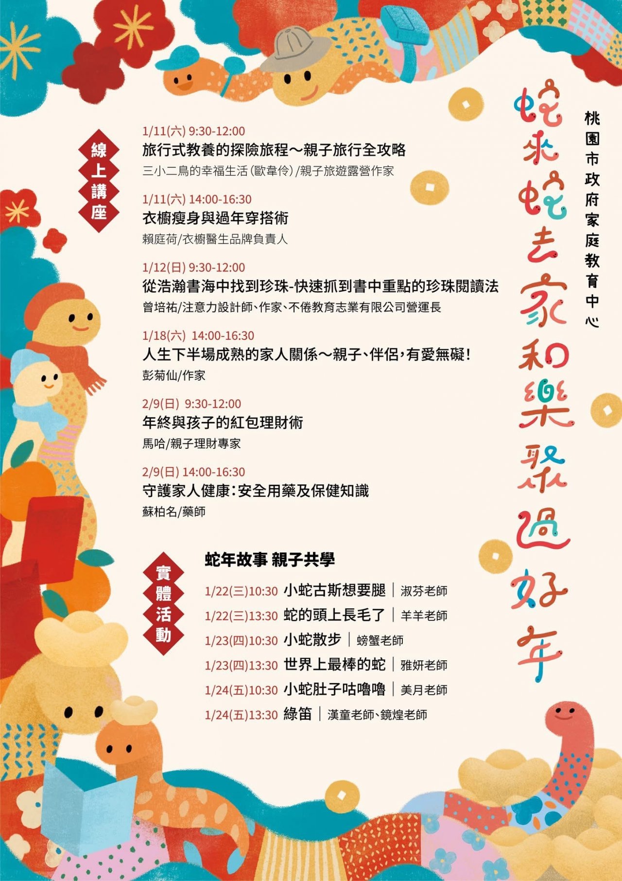 檢送本中心「小桃家幸福+Podcast」、「蛇來蛇去家和樂聚過好年」海報1份,惠請貴機關(學校)運用多元管道宣導,請查照。