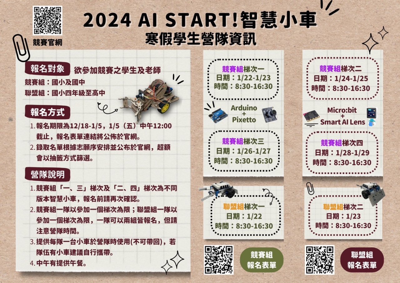 | 主旨: | 轉知有關國立臺灣師範大學辦理「智慧小車寒假營隊」一案,請查照。 |