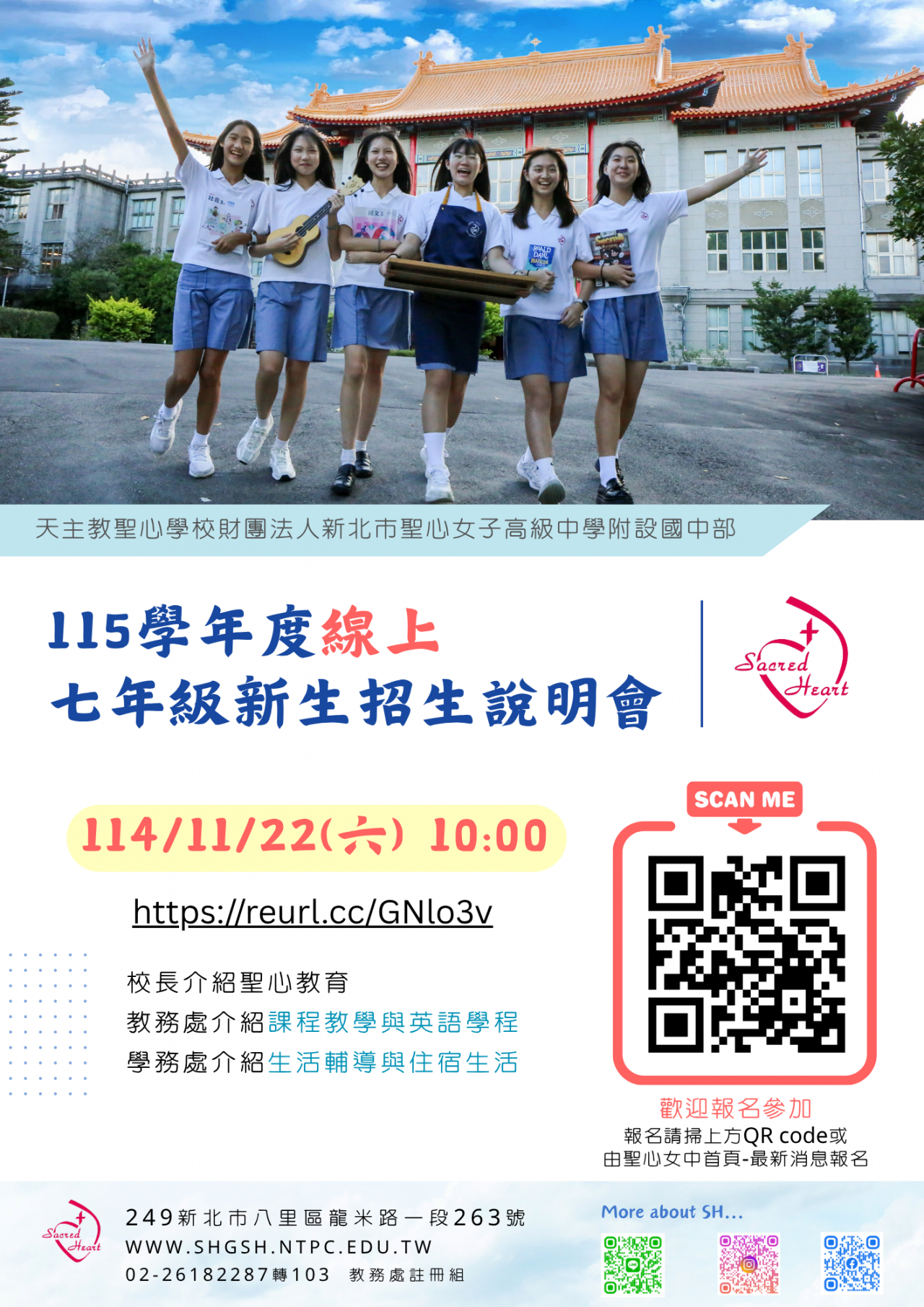 115學年度聖心女中七年級新生線上招生說明會,歡迎六年級女學生及家長踴躍報名。 |